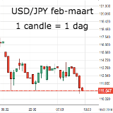 Na het gerucht van de 'rate check' steeg de USD/JPY tot 112,00, maar aan het begin van de vrijdag koerste het valutapaar alweer onder de 111 op de forex. Het lijkt dan voorlopig ook nog niet gedaan met de yen sterkte.