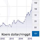 De Maleisische ringgit verloor 0,4 procent op de forex en daalde tot dichtbij het laagste niveau sinds 31 augustus 1998, de dag voordat Maleisie de ringgit tijdelijk koppelde aan de dollar om de verliezen als gevolg van de Aziatische financiele crisis een halt toe te roepen.