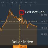 De dollar index, die woensdag voor publicatie van de Fed notulen nog boven de 99,80 kwam, was aan het begin van de donderdagochtend gedaald tot 99,38.