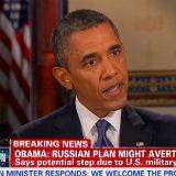 Obama zei gisteravond dat hij "encouraging signs" zag voor de kans op een diplomatiek einde aan de confrontatie met het regime van Assad en dat hij Congress had gevraagd om een stemming over authoriseren van een militaire aanval uit te stellen.